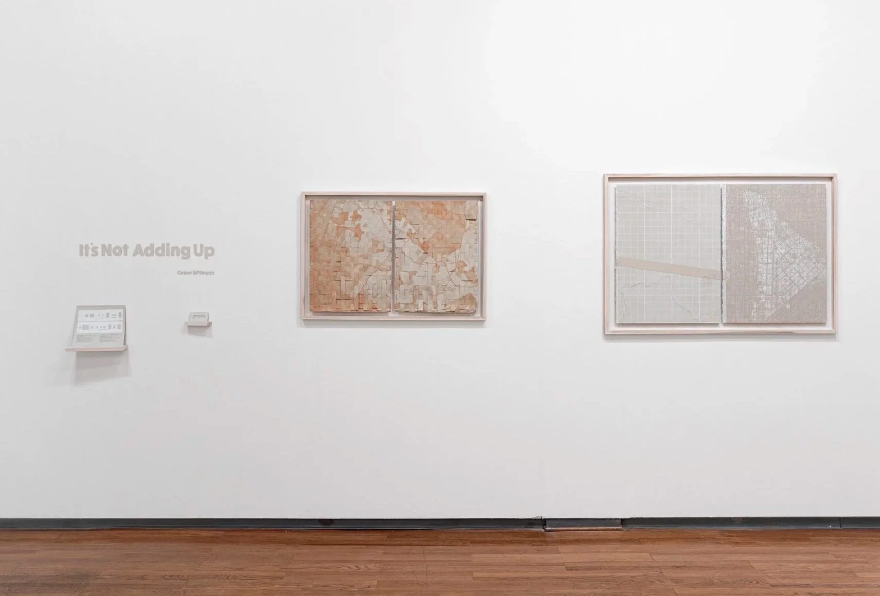 It is a body of work is looking for answers but ends up being more comfortable with questions. The exhibition is a warning against certainty and trust in systems, a call to bring a skeptical eye to neat and tidy solutions, and an invitation to collectively question the culture. If, as Albert Camus suggests, “beginning to think is beginning to be undermined,” then this work is designed to undermine itself in order to continue to build understanding. Context and process are more important than conclusions. It’s Not Adding Up because it will never add up.
